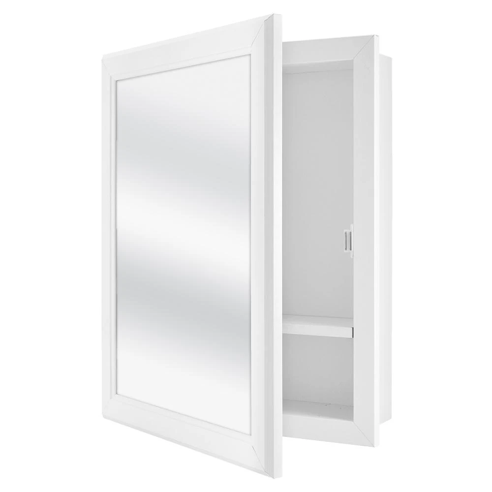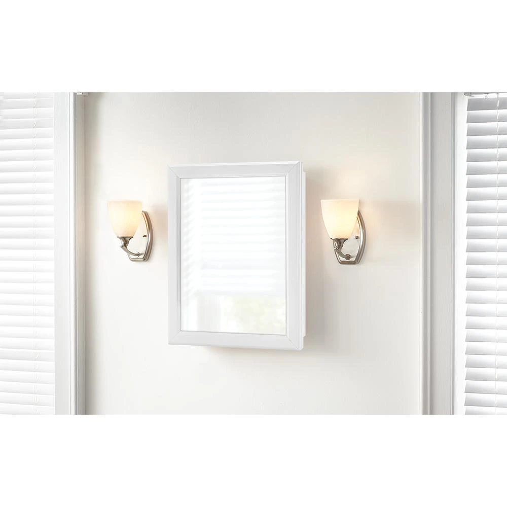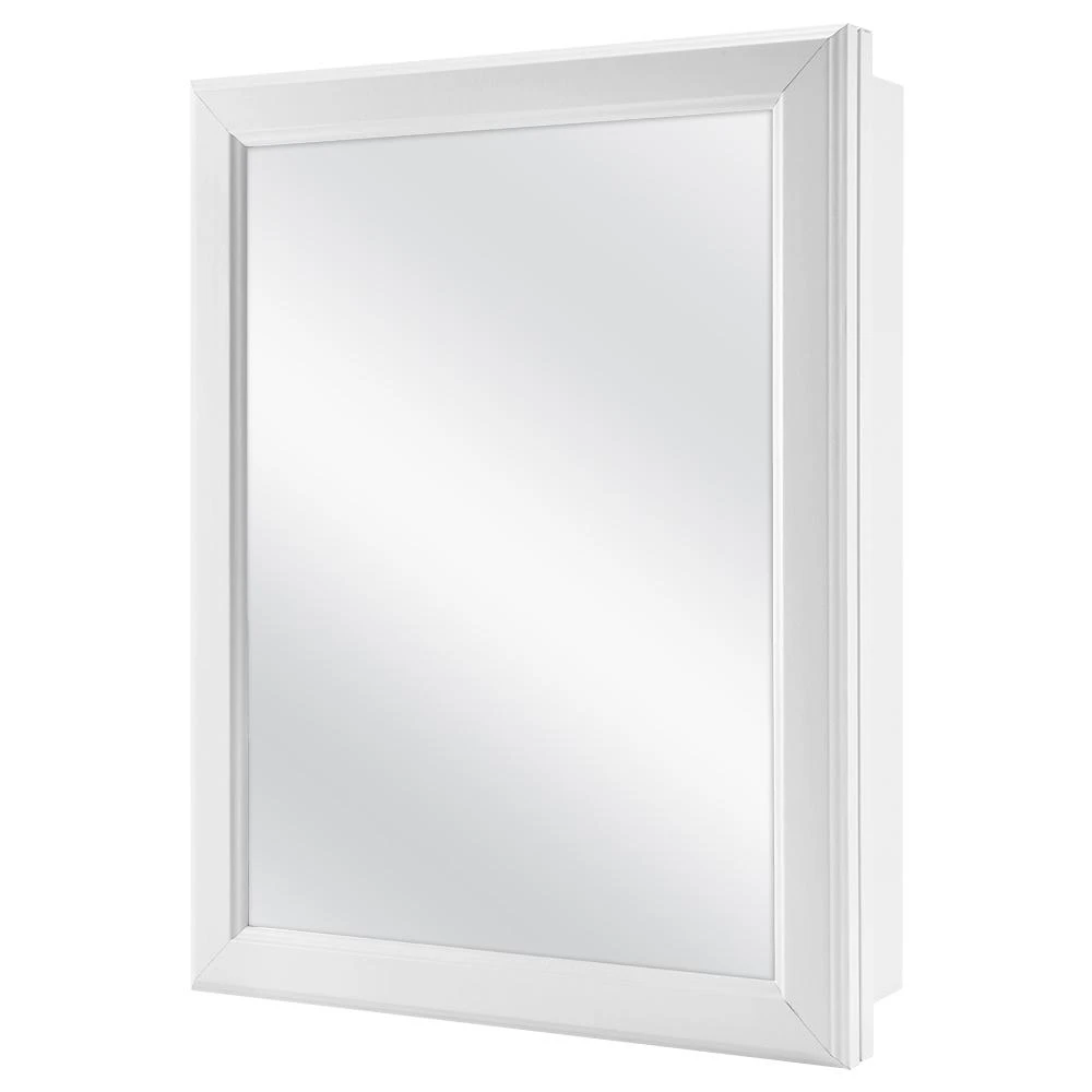 Add a classic look to your bathroom or powder room with this Glacier Bay Framed Recessed or Surface-Mount Bathroom Medicine Cabinet. The adjustable shelf offers ample storage flexibility, while the Wood Composite frame provides exceptional durability and strength. Double shelf pegs enable you to customize your space quickly and easily. Can be mounted to open left or right. Fully assembled for your convenience.