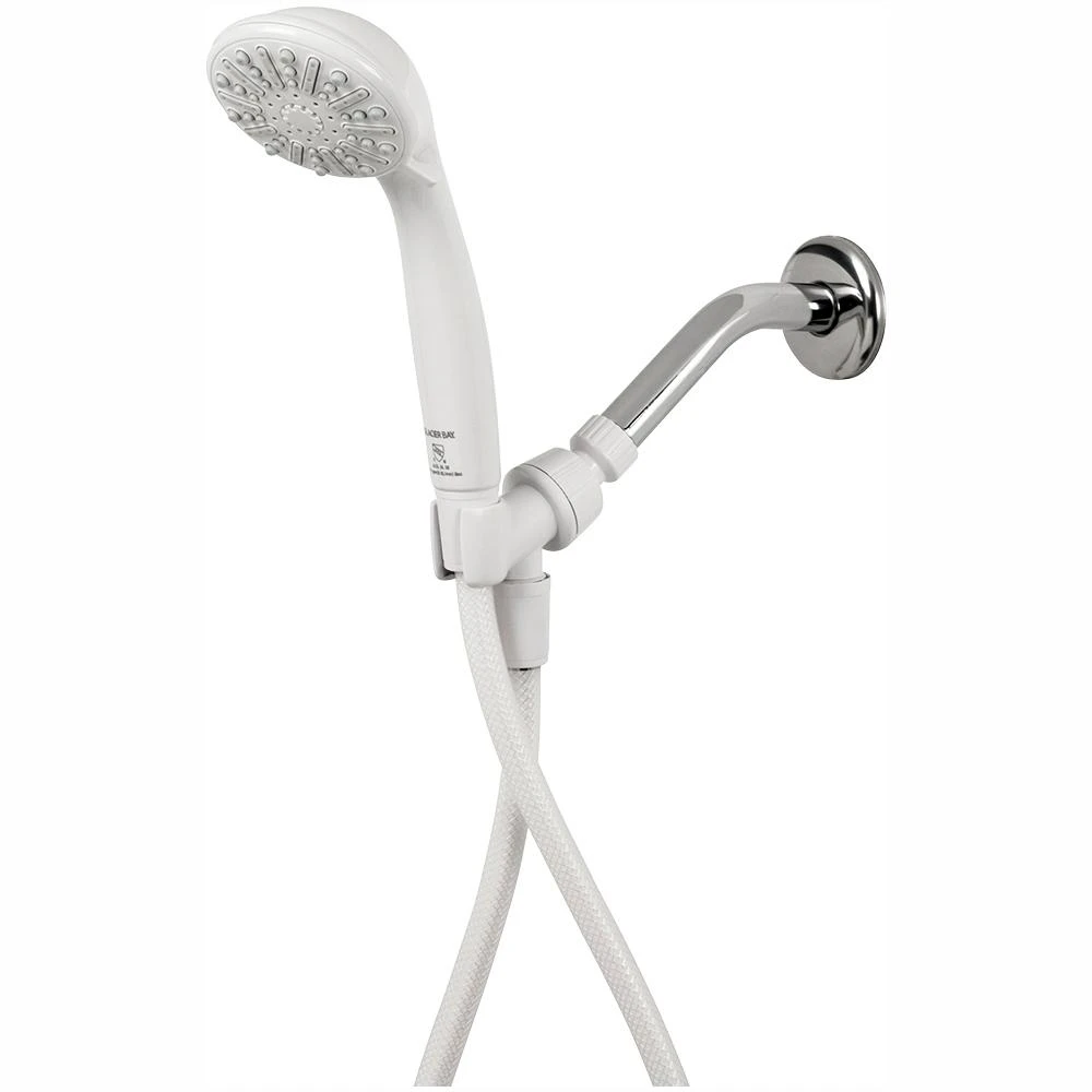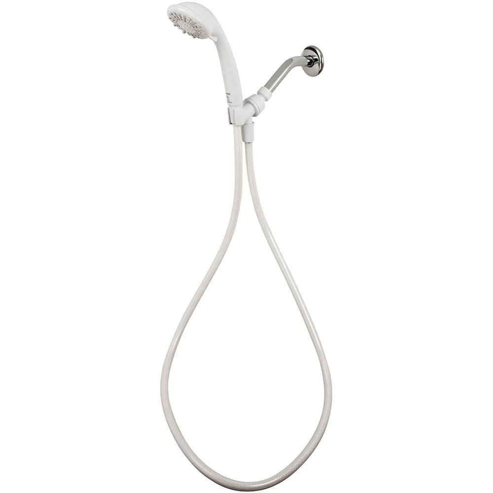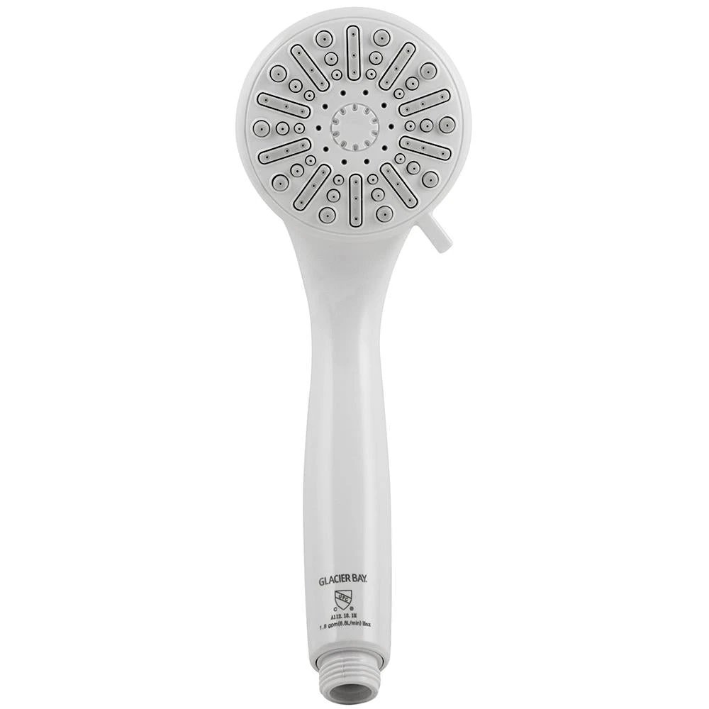 The Glacier Bay 3-Function Hand shower in White has a fresh look that will complement a wide variety of bathroom decor. Combining convenience with functionality, the 60 in. reinforced hose provides ample room for mobility, while the 3-spray setting allows you to customize water flow to your personal preference. With a 1.8 GPM flow rate, you are ensured steady water flow with plenty of cleaning power for a pleasurable shower experience. Pair with other pieces from Glacier Bay for a complete, polished look. Limited Lifetime Warranty. Easy installation, requires no tools.