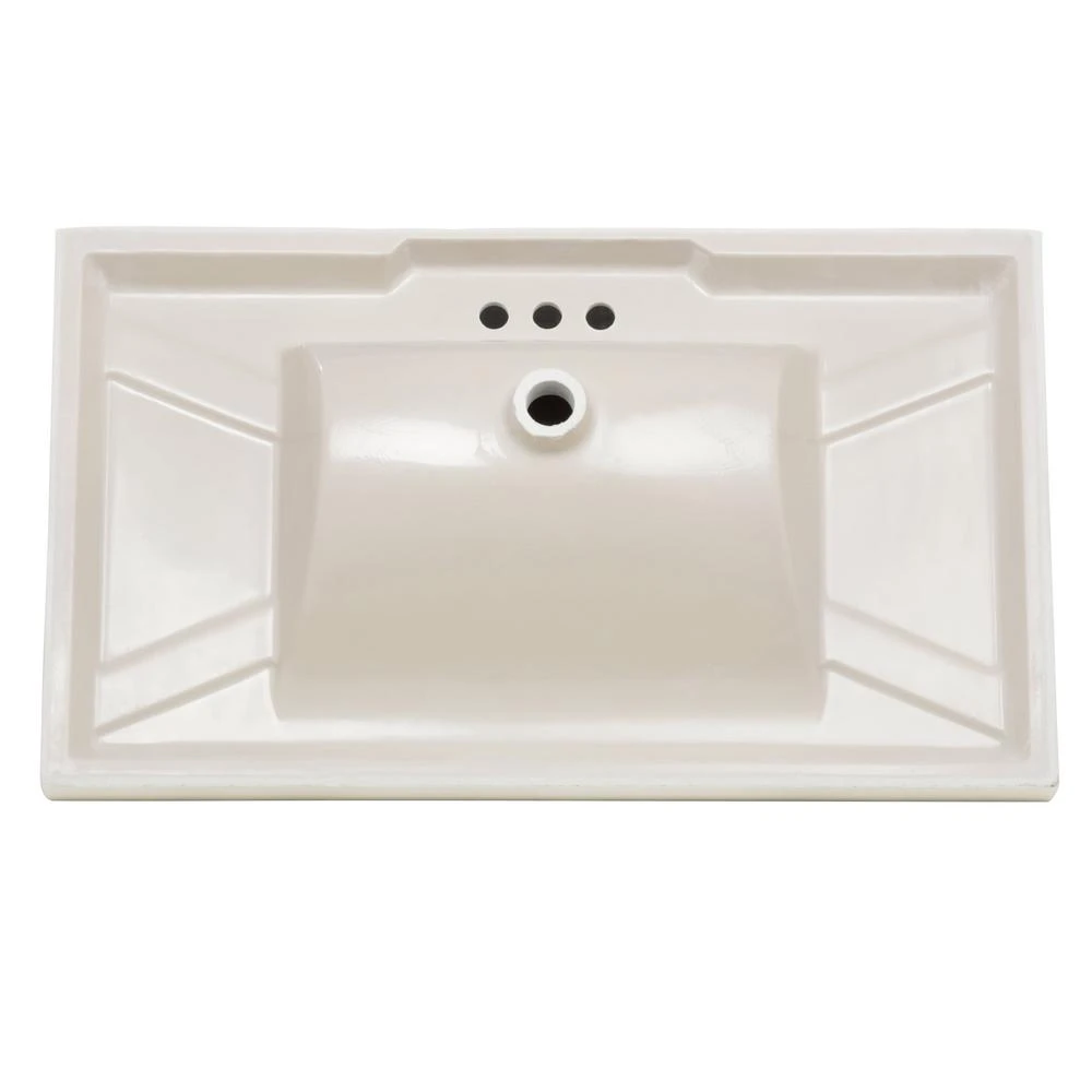 - Top is pre-drilled for a 4 in. centerset faucet setup, faucet sold separately