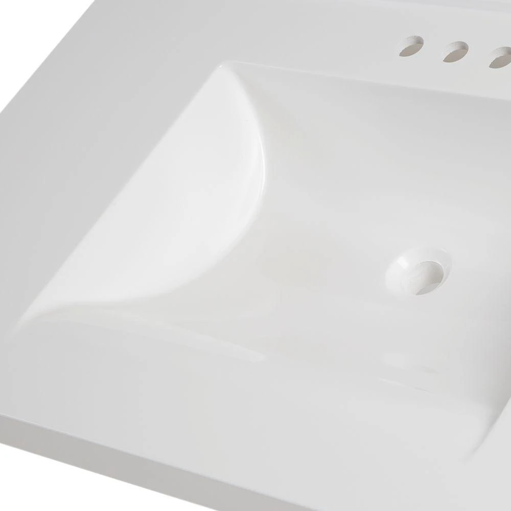 The Glacier Bay 37 in. Cultured Marble vanity top with a solid white finish encompasses a quality that is sure to give your home that clean, contemporary look you’ve been searching for. With the uniquely designed integrated rectangular bowl, the Glacier Bay sink is truly beautiful and perfect for your home. Your new vanity top also offers an extra thick 2 in. edge detail with a slightly raised 0.5 in. backsplash that will help protect your wall, and the back of your cabinet, against small splashes and spills.