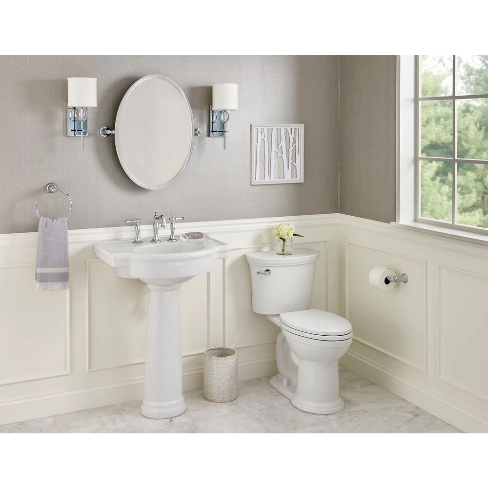 This American Standard Retrospect Pedestal Sink Combo in White features a squared deck offering plenty of room for keeping toiletries such as soap and toothbrushes within easy reach. The fireclay material offers a stain-resistant surface for ease of maintenance. The sink and pedestal are designed to provide greater comfort by placing the basin at a convenient height for use. A mounting kit is included for ease of installation.