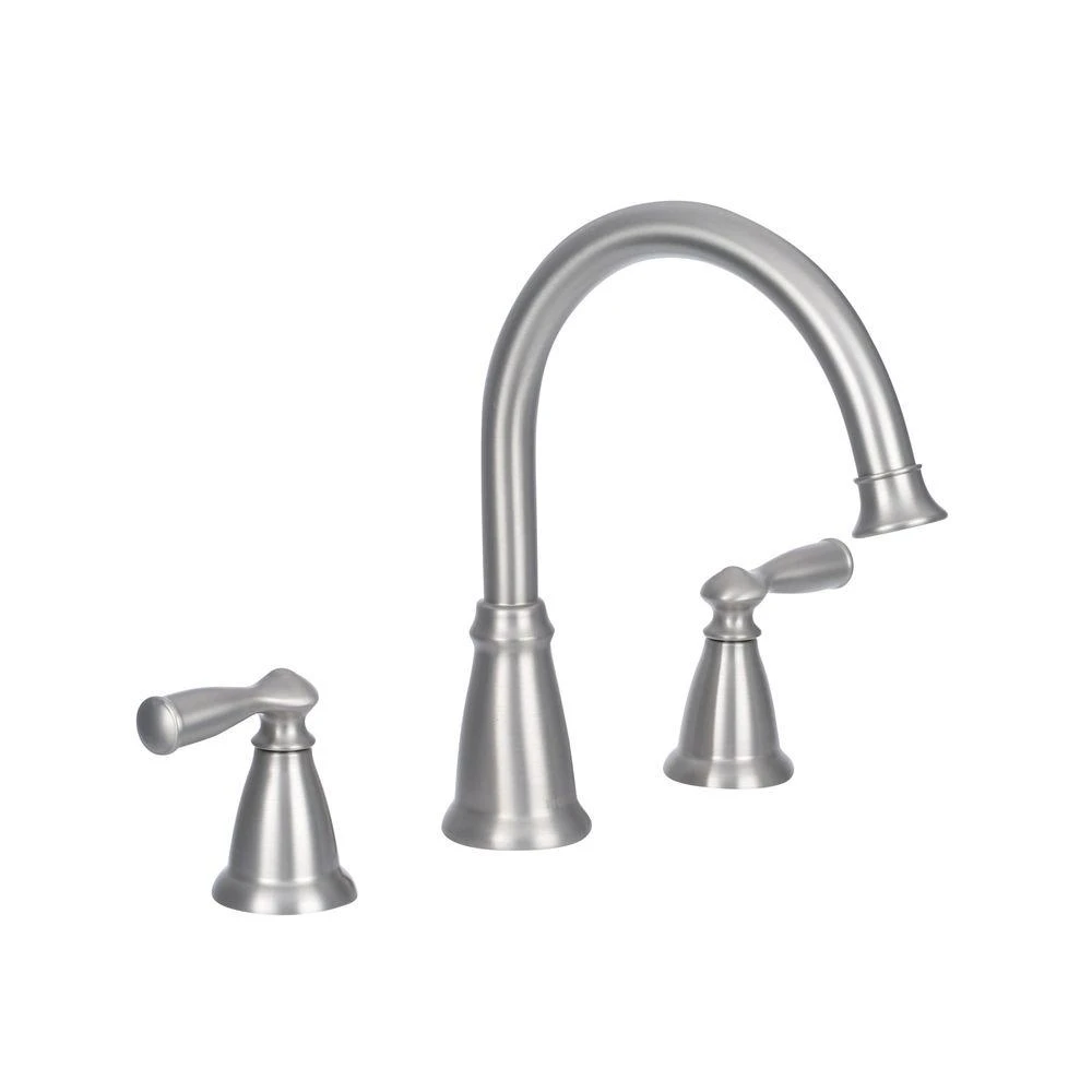 The MOEN Banbury 2-Handle Deck-Mount Roman Tub Faucet in Brushed Nickel offers a timeless and traditional look that is both classic and sensible. The faucet features an innovative Spot Resist finish to avoid fingerprints and water spots to maintain the brilliance of the original finish and easily wipe clean. The faucet also has a high arc spout for extra clearance. Complete the look of your bath with the full line of Banbury faucets and bath accessories.
