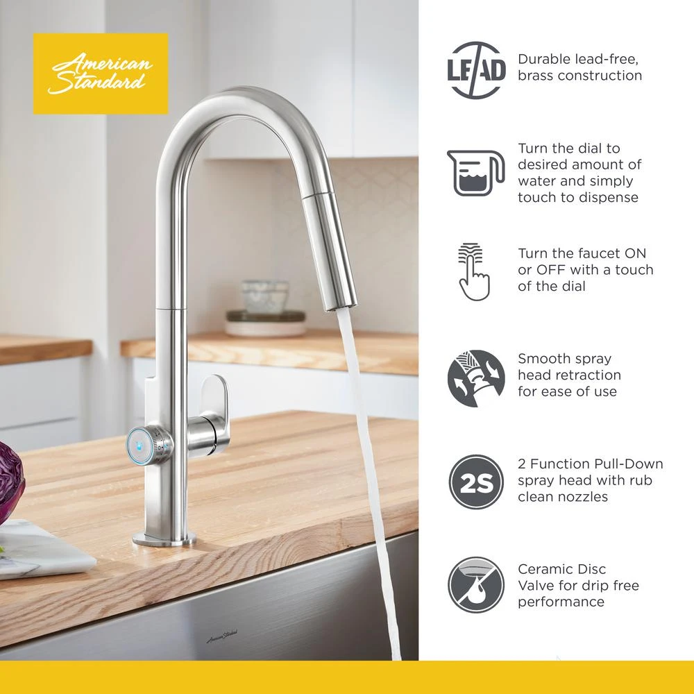 - Touch functionality: faucet can be turned on and off with a simple touch on the faucet dial window