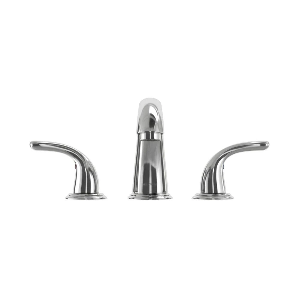 The Builders Widespread 2-Handle High-Arc Bathroom Faucet from Glacier Bay in Chrome finish offers an attractive curved design with smooth, soft lines. WaterSense certified, this efficient faucet features a 1.2 GPM flow rate to help reduce water use and ceramic disc cartridges to prevent drips. Easy to use with dual lever handles and a high-arc spout, it is finished in gleaming chrome. This Faucet features the Glacier Bay exclusive ClickInstall drain for quick and simple installation. Pair with other pieces from the Builders collection to create a stylish theme throughout your bathroom.