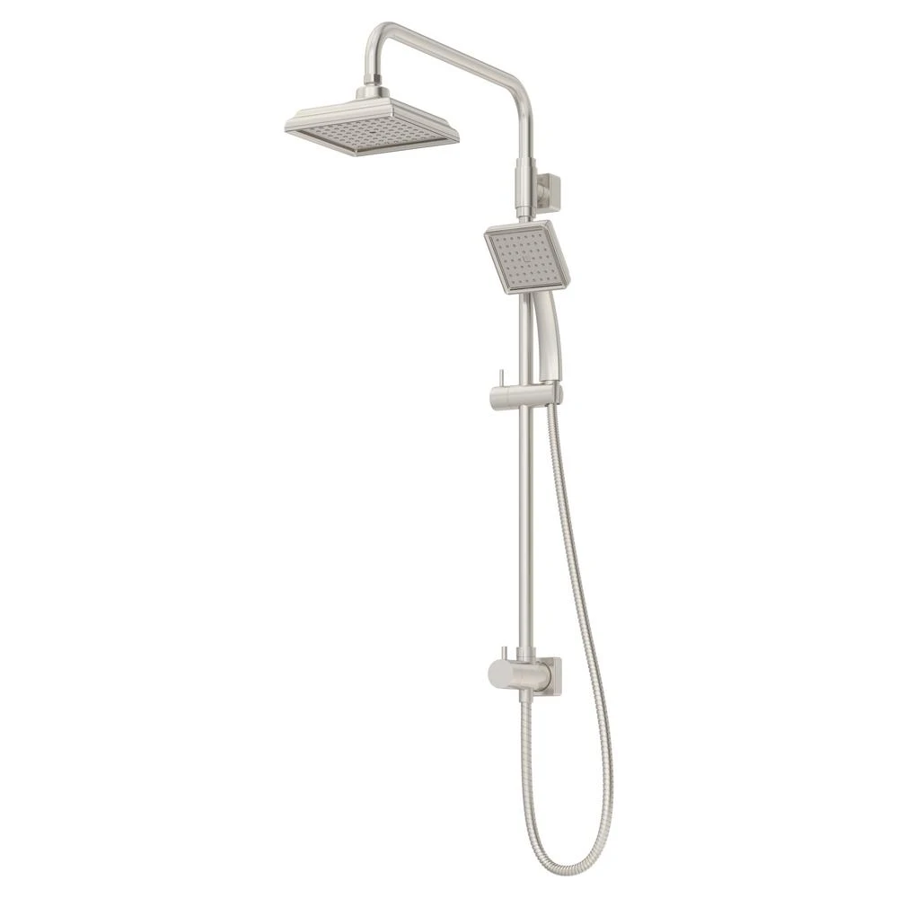 Exposed shower riser includes lever handles, adjustable slide mechanism, diverter for toggling between fixtures, exposed shower column/slide bar, 60 in. flexible metal hose with single check valve and hand shower bracket. Symmons offers a full selection of accessories including showerheads, hand showers, diverters, towel bars, and more. Symmons accessories are available for a wide variety of residential, commercial, and institutional applications. Trusted by professionals for over 80 years, Symmons will deliver the quality you expect and the looks you desire.
