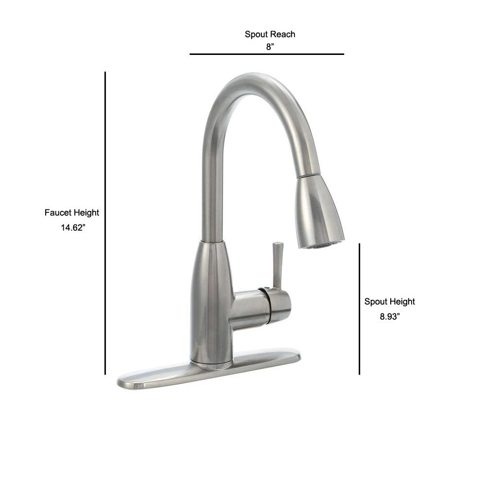 - Swivel spout and pull-down spray head reach every corner of the sink