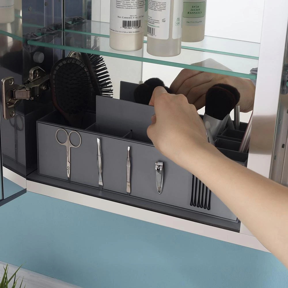 - Includes a magnetic organizer and magnifying mirror