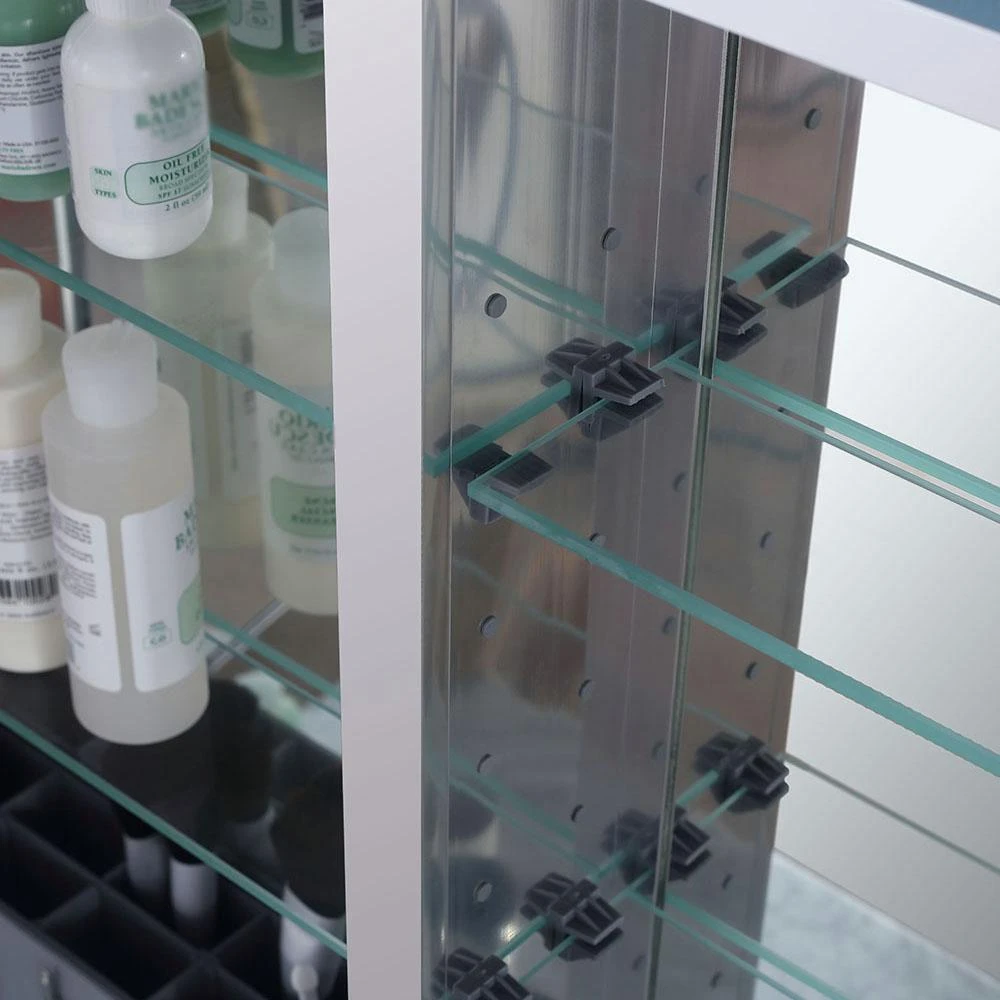- Surface mount medicine cabinet with 4 adjustable shelves