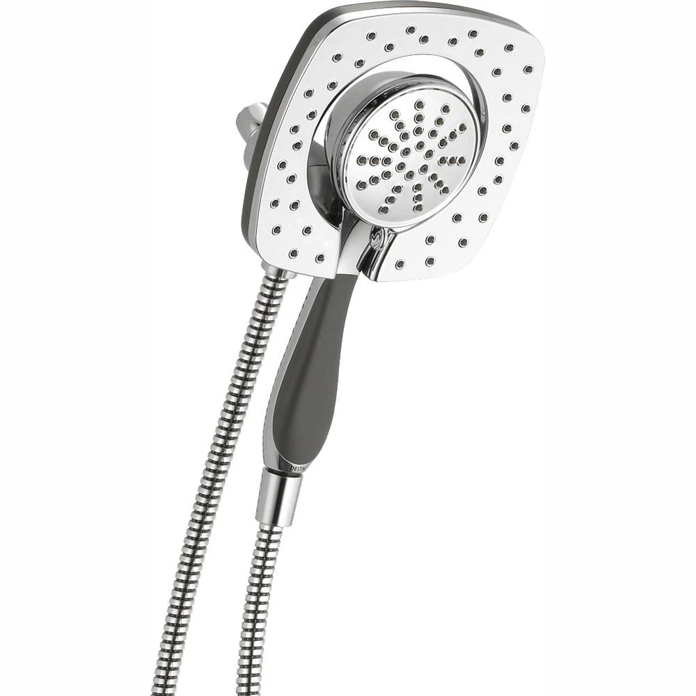 The In2ition shower features a detachable hand shower, which can run separately from or simultaneously with the shower head, giving you the warmth and flexibility of 2 streams of water at once. Enjoy the comfort of water streaming from the shower head position, while the hand shower offers the flexibility to accomplish other tasks, such as bathing your children; washing your pet; and keeping your shower clean. When you’re finished, simply slip the hand shower back into place on the shower head. The In2ition Two-in-One Shower is a quick and easy way to upgrade your shower. Simply remove your current shower head and replace with the In2ition shower. There’s no need to go behind the wall to enhance your everyday shower. Innovative Pause feature allows you to conserve water while lathering up. Buy with confidence, knowing that Delta backs all of its products with a lifetime limited warranty.
