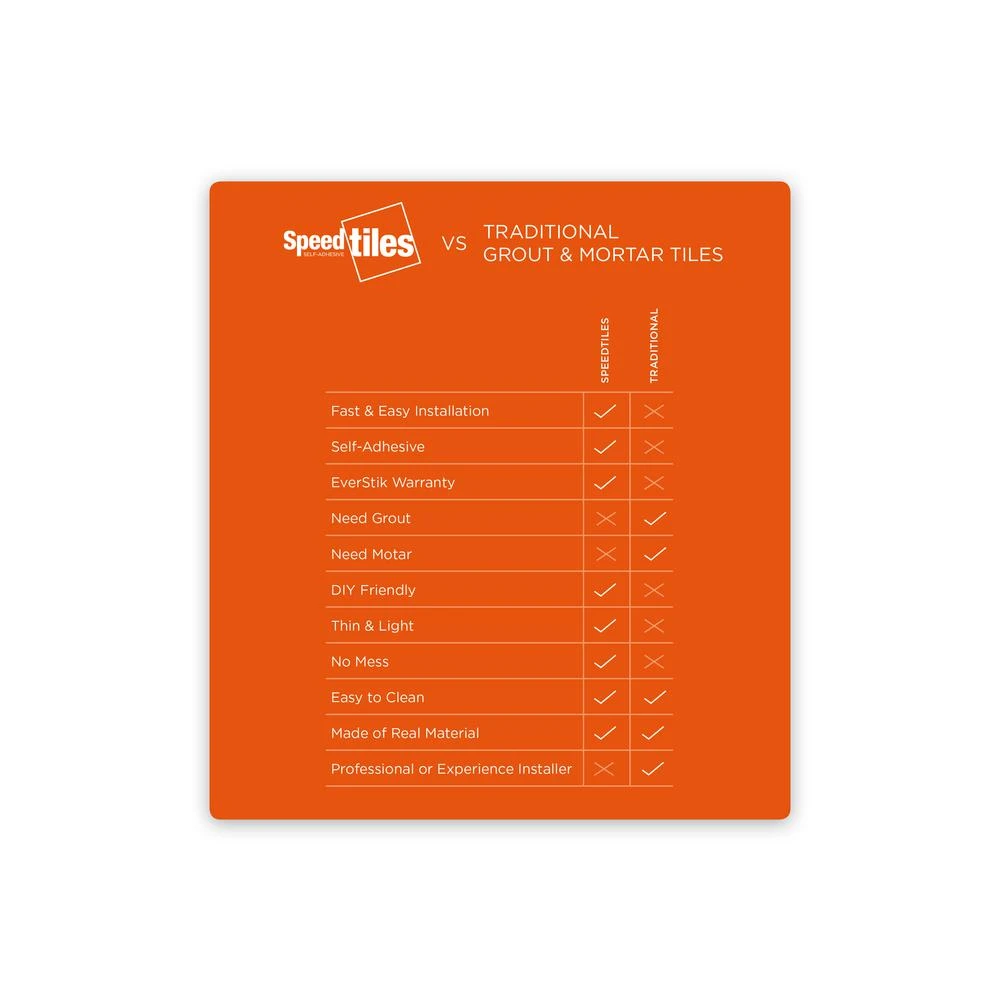 Opt for the quality and impeccable finish of SpeedTiles stone self-adhesive tiles: a simple, easy-to-install solution to update your decor. Equipped with a powerful, time-tested adhesive, these high-quality wall tiles are easy to handle, cut and maintain. Just peel the film and stick. Made with proven materials, SpeedTiles are heat and moisture resistant, and can be installed on almost any wall in the house. Carry out your project without glue or grout, hassle free, at a fraction of the cost.