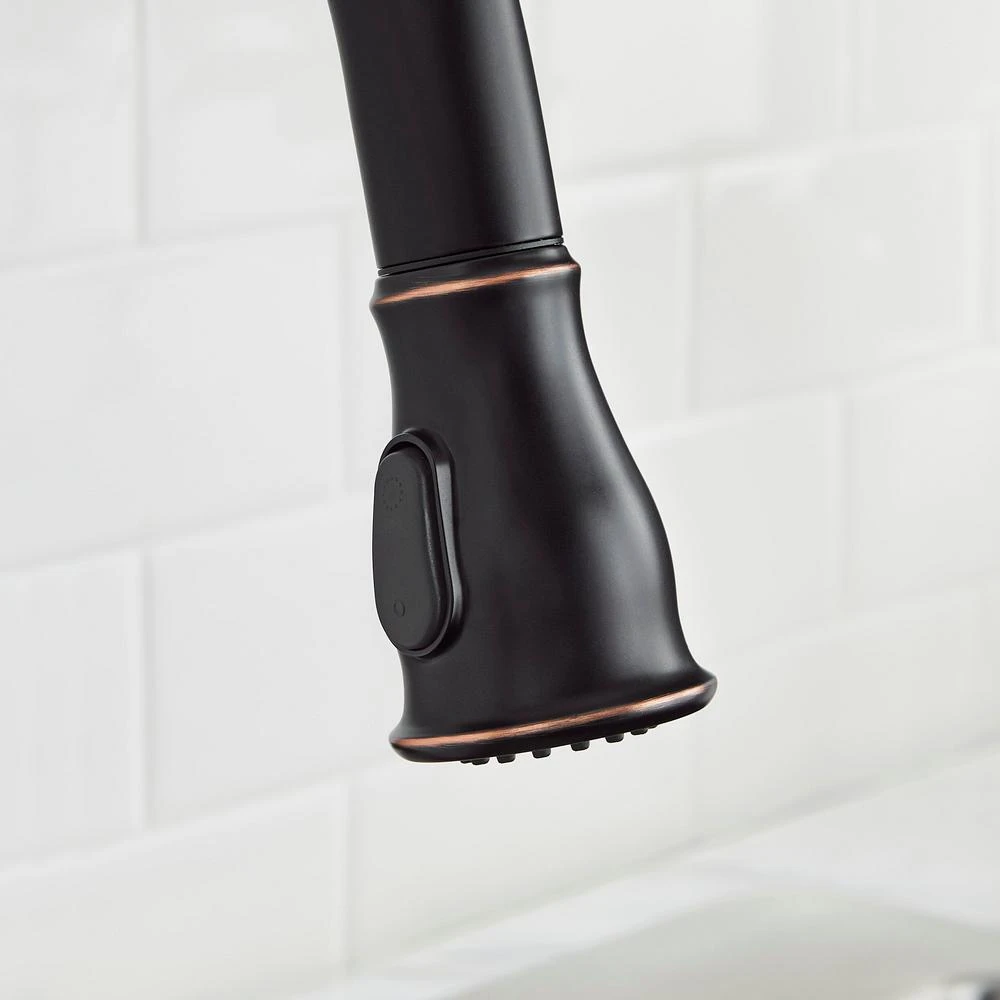 - 2-function spray head features stream and sweep, a wide forceful spray that makes cleanup easier, to facilitate all the various tasks of the kitchen space