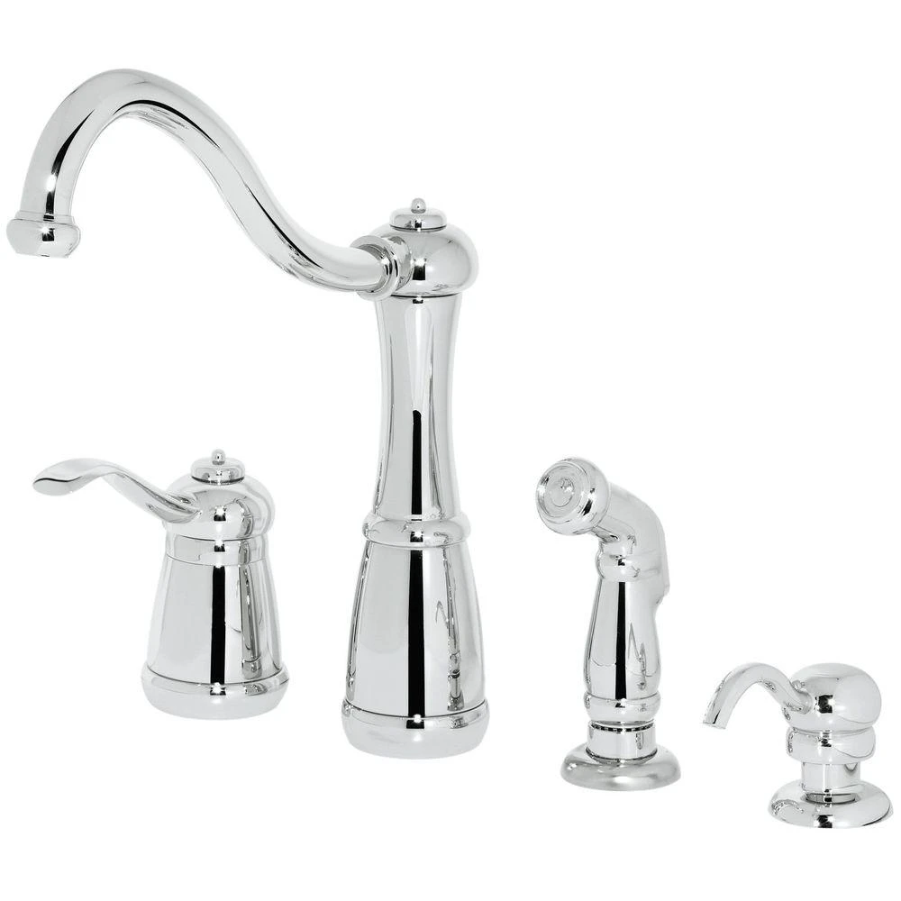Vintage French country design has set its sights on the American kitchen. The Marielle, a single control faucet with coordinating side spray, brings international style and the elegance of old to the contemporary kitchen. As an added benefit, the faucet comes with a matching soap/lotion dispenser for an integrated look in the kitchen.