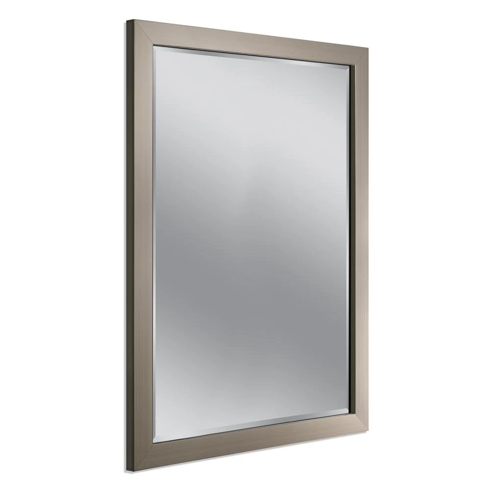 Add a striking focal point to any room with the Modern Mirror in Brushed Nickel from Deco Mirror. A high-polished brushed nickel frame complements most popular finishes, designed with a heavy 2 in. x 2 in. frame profile to create a contemporary, industrial look. The mirror is designed with beveled glass and can be hung either vertically or horizontally for flexible styling.
