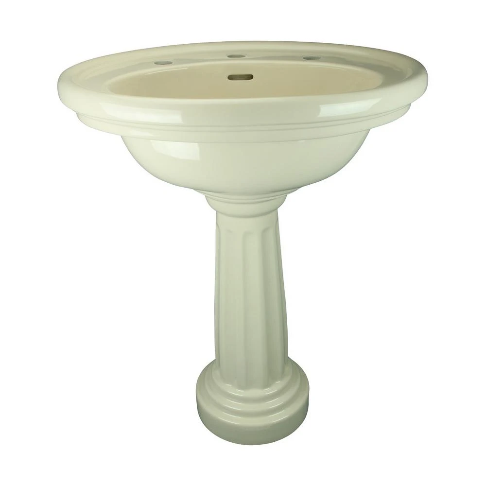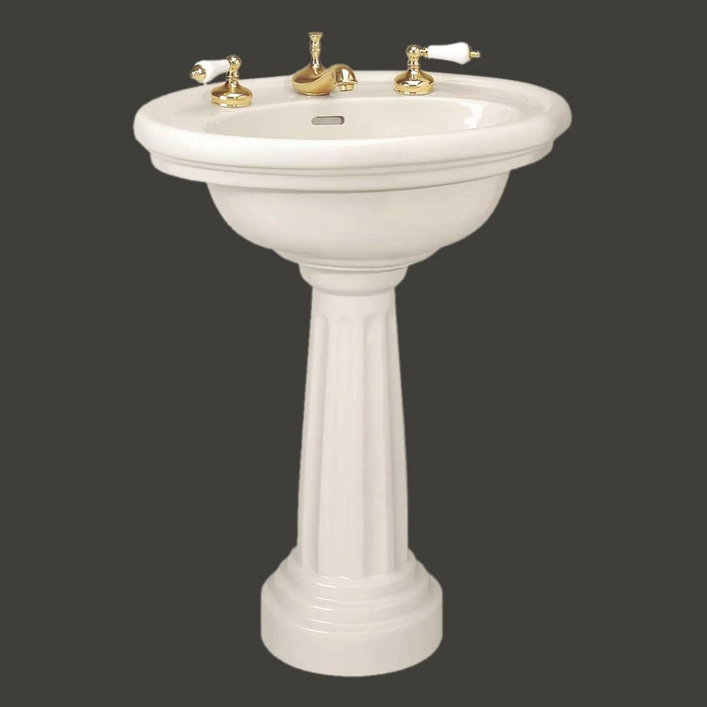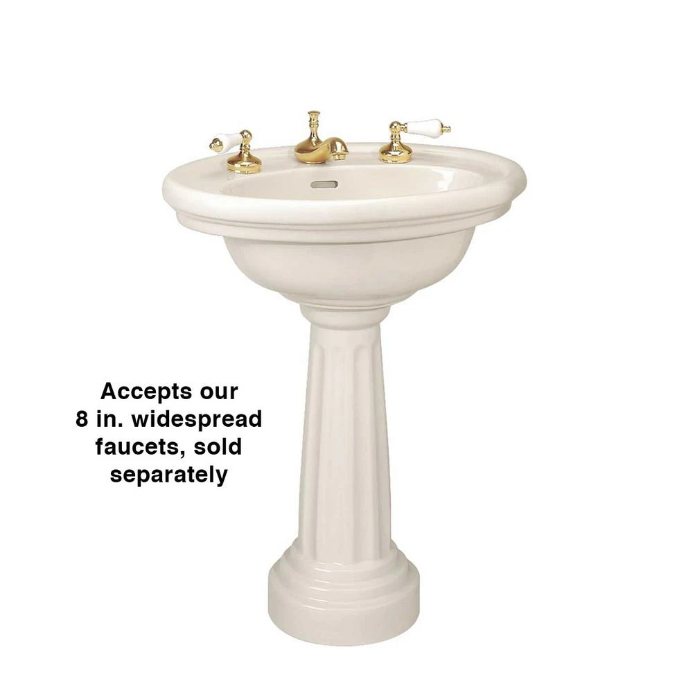 Pedestal Sinks: Made of Grade A vitreous China these pedestal are beautiful & easily endure daily wear & tear. Our protective RENO-GLOSS finish resists common household stains & makes it an EASY CLEAN wipe-off surface. Ergonomic & elegant easy reach & height design reduces daily strain placed on your body. SPACE-SAVING design maximizes limited bathroom space. This sinks is a luxurious widespread that accepts widespread faucet styles (sold separately). Measures 32 1/4 in. H x 26 1/8 in. W x 19 3/8 in. proj. x 6 1/2 in. deep.